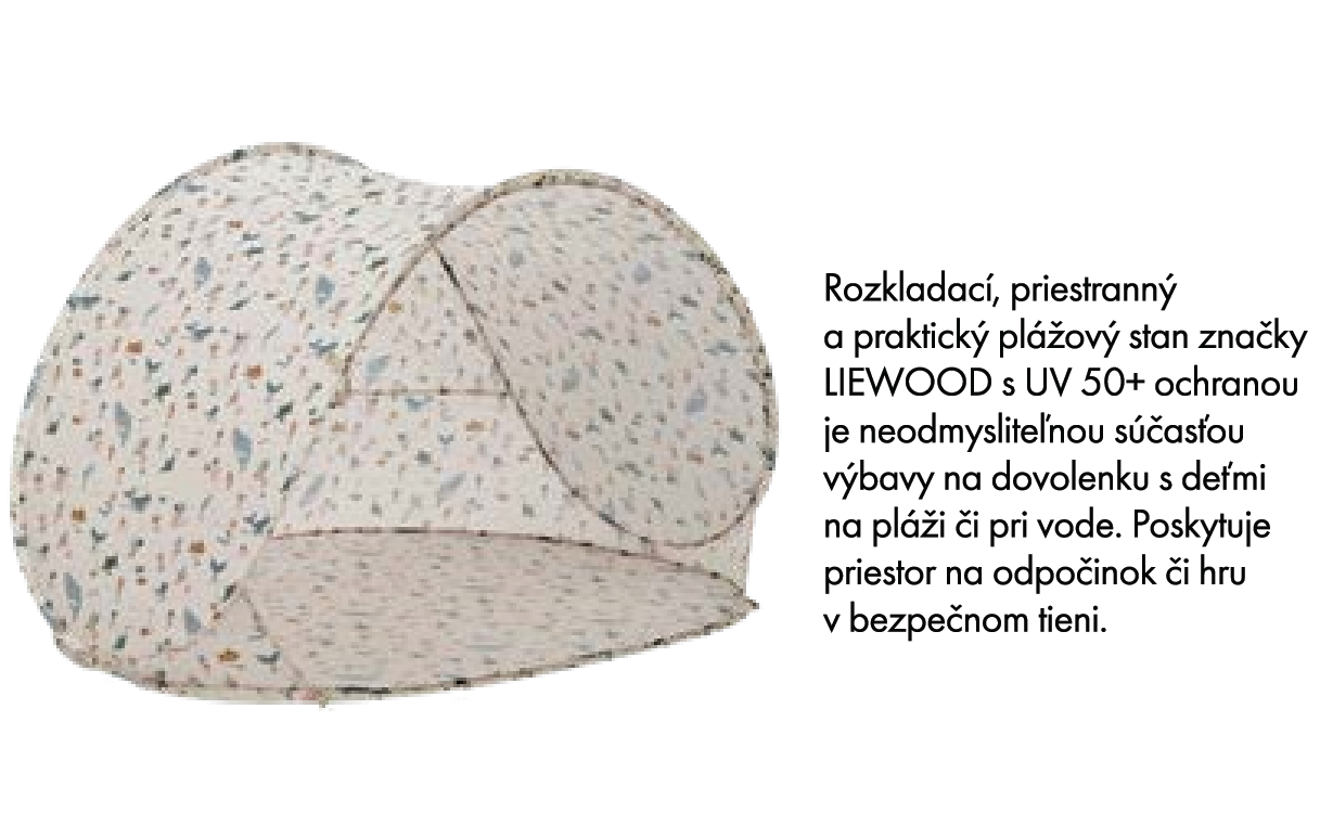 Voda a piesok môžu zvýšiť účinky slnečného žiarenia, preto je dôležité byť extra opatrný hlavne pri pobyte na pláži. Postarajte sa o tieň, v ktorom budete oddychovať, či už pôjde o slnečník, alebo tieň stromov. Pri malých deťoch je skvelým tipom praktický a skladný plážový stan, ktorého látka tiež zabezpečuje UV ochranu. Takéto stany poskytujú počas dňa deťom pohodlie a priestor pre odpočinok v bezpečnom tieni.