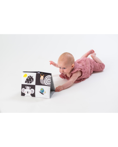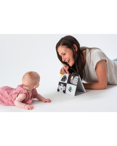 Knižka ponúka dva typy obrázkov pre dve vývojové štádiá dieťaťa: 0-3 mesiace: bezpečné zrkadielko a vysoko kontrastné jednoduché obrázky