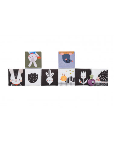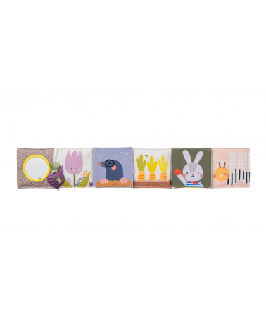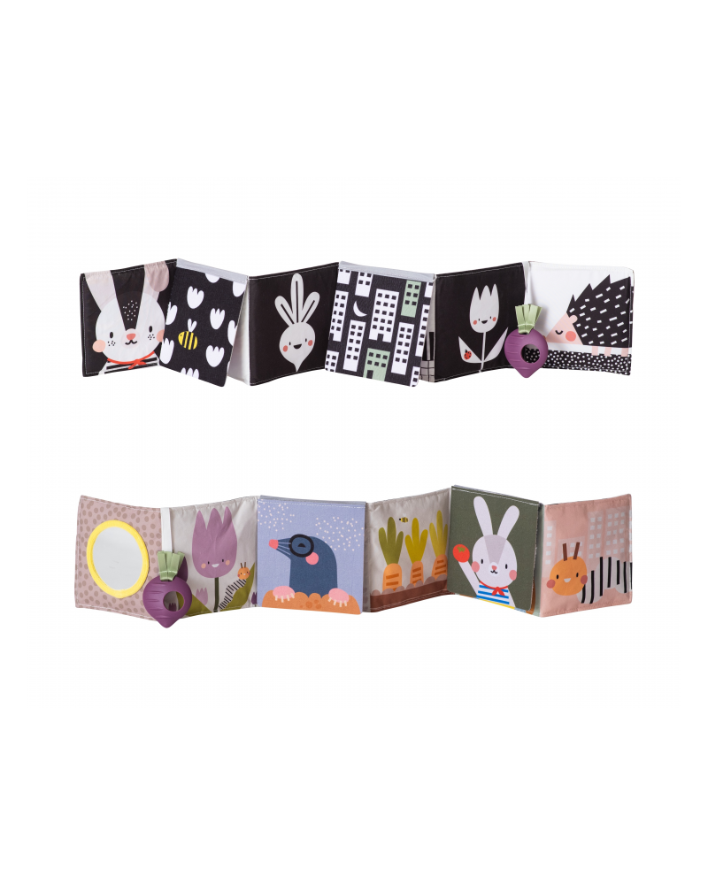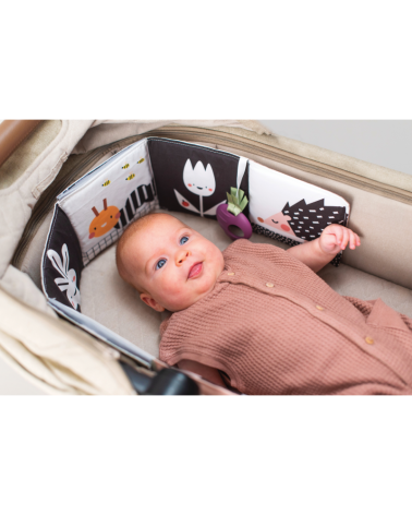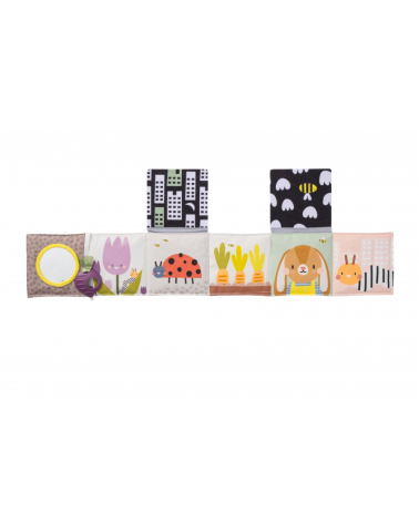 Obojstranná textilná knižka pre najmenších je určená do kočíka, postieľky aj na hraciu deku.