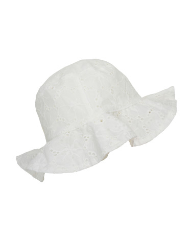 Krásny dievčenský klobúk z krajky madeira. Dokonale chráni pred slnkom a vďaka širokému okraju po celom obvode chráni aj krk.