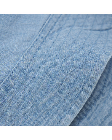 100%-ná bavlna Chambray je jemná na dotyk a priedušná. Ideálne na letné prechádzky, výlety, plážové dni alebo ako ochrana pred slnkom pri hrách na čerstvom vzduchu.