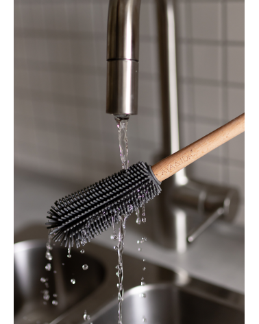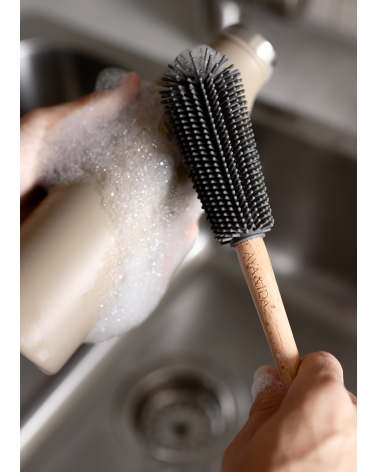 S kefou na fľaše AYA&IDA môžete svoje pitné fľaše čistiť rýchlo a dôkladne. Dokonale sadne do všetkých pitných fliaš AYA&IDA od 350 ml do 1000 ml. Jej zaoblená kefová hlava z flexibilného silikónu ľahko dosiahne až na dno fľaše. Kefa na fľaše je vyrobená zo silikónu s drevenou rukoväťou. Prírodná drevená rukoväť poskytuje pohodlný úchop a elegantný vzhľad.